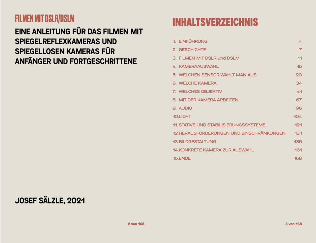 Das Inhaltsverzeichnis vom Ebook Filmen mit DSLR und DSLM.